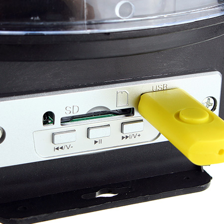 شما هم دوست دارید که در منزل خودتان دستگاه رقص نور داشته باشید تا در تولدها، جشن ها و مهمانی ها از آن استفاده کرده و بر جذابیت جشن بیافزایید. محصول جدید و بینظیر دستگاه رقص نور اسپیکردار است که دارای سنسور صوتی بوده که با میزان صدا تغییر رنگ داده و چرخش می کند. دستگاه رقص نور همچنین دارای ریموت کنترل از راه دور بوده و مهمتر از همه دارای بلندگو است و قابلیت پخش موزیک MP3 را دارد که از طریق فلش و مموری موزیک پخش می کند.