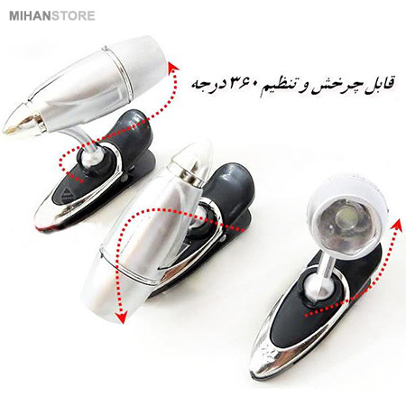 چراغ  کلیپسی جیبی، محصولی با طراحی جدید و بسیار کاربردی برای همه افراد در شرایط مختلف است. این چراغ قوه شامل یک چراغ ال ای دی با نور مناسب جهت روشن کردن سطح می باشد که با استفاده از سه عدد باطری ساعت تغذیه می شود. چراغ بر روی پایه با قابلیت چرخش 360 درجه و تنظیم زاویه تابش قرار گرفته که با استفاده از آن به سادگی می توانید نور مورد نیاز را در موقعیت مناسب تنظیم و ثابت کنید . پایه چراغ قوه مطالعه ، مجهز به گیره کلیپسی شکل می باشد که با وجود آن می توانید چراغ را بر روی لبه کتاب ، جزوه و سایر سطوح... قرار دهید تا نور مورد نیاز شما  را تأمین نماید، علاوه بر این از  چراغ  کلیپسی جیبی، می توان برای روشن کردن صفحه کلید لپ تاپ نیز استفاده نمود، کافیست بر روی لبه نمایشگر نصب و زاویه آن را روی صفحه کلید تنظیم نمایید . ابعاد مناسب ، وزن کم ، نور کافی ، امکان نصب آسان بر روی لبه کتاب ، نمایشگر و ... ، همگی ویژگی هایی هستند که چراغ قوه کلیپسی را به یک ابزار کاربردی با امکان حمل و جابه جایی آسان جهت دسترسی در شرایط مختلف تبدیل نموده است .