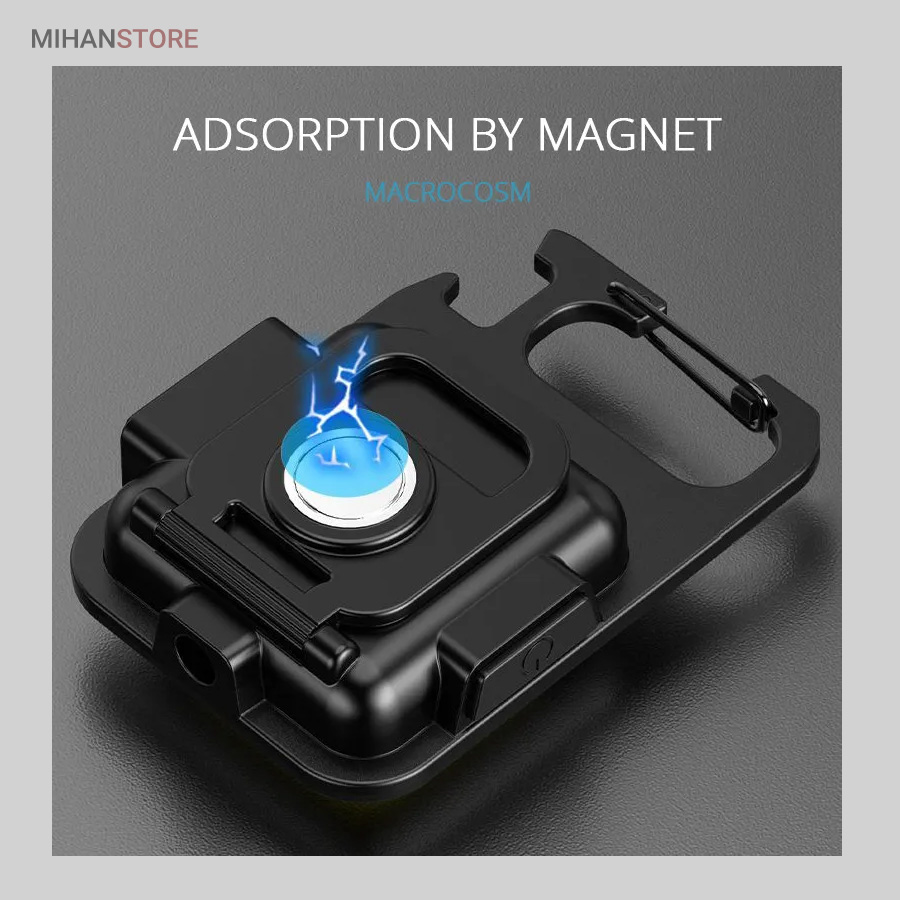 وقتی زمان شارژ  مجدد فرا می رسد، کافی است آن را به هر منبع تغذیه USB وصل کنید. این چراغ  قوه شارژی USB توسط یک باتری داخلی قابل شارژ با ظرفیت 500 میلی آمپر  ساعت، کابل شارژ تایپ C به USB تغذیه می شود. معمولاً حدود 2 ساعت طول  می کشد تا کاملاً شارژ شود. پایه آهنربایی  قوی و دسته قابل چرخش به شما امکان می دهد در حین کار دستان خود را رها  کنید. طراحی آهنربا به لامپ اجازه می دهد تا به هر فلزی متصل شود و دسته  قابل تاشو 180 درجه اجازه می دهد تا لامپ در زوایای مختلف قرار گیرد یا در  مکان های خاصی آویزان شود.این چراغ قوه  جاکلیدی می تواند نورهایی با حداکثر 800 لومن ساطع کند. این یک نور روشن با  زاویه گسترده ارائه می دهد. LED فنی بزرگ COB اجازه می دهد تا از این چراغ  به عنوان چراغ کار کوچک و چراغ اضطراری استفاده شود. چراغ قوه قابل حمل دارای کارابینی است که به راحتی به حلقه کلید یا کیف وصل می شود و در  برابر آب و ضربه مقاوم است. از طرف دیگر، بطری بازکن خوبی است. شما می  توانید از آن در سناریوهای مختلفی مانند کمپینگ، پیاده روی سگ، جستجوی  چیزها، تعمیر استفاده کنید.