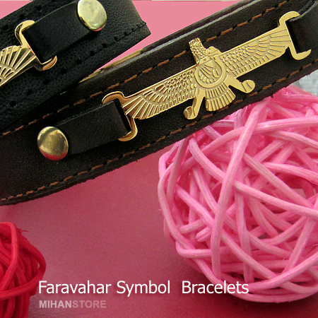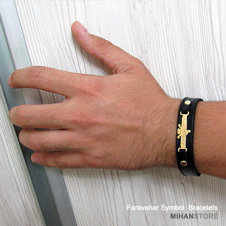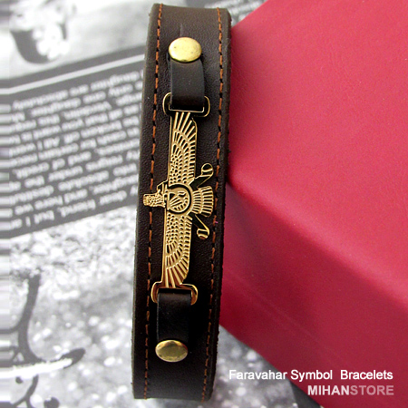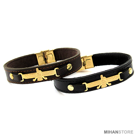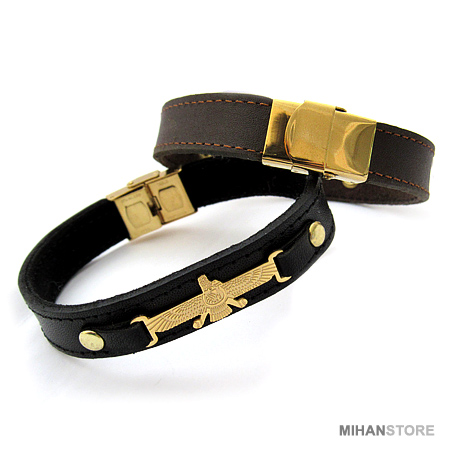دستبند چرمی طرح فروهر با دو رنگ قهوه‌ای و مشکی و پلاک نازک طلایی فروهر نمونه‌ای از زیورهای ساده و در عین حال پرطرفدار از جانب آقایان و خانوم ها است که با اکثر رنگ‌های لباس همخوانی داشته و در عین حال متفاوت دیده می‌شود. این دستبندها مناسب ترین هدیه برای جوانان شیک پوش است.