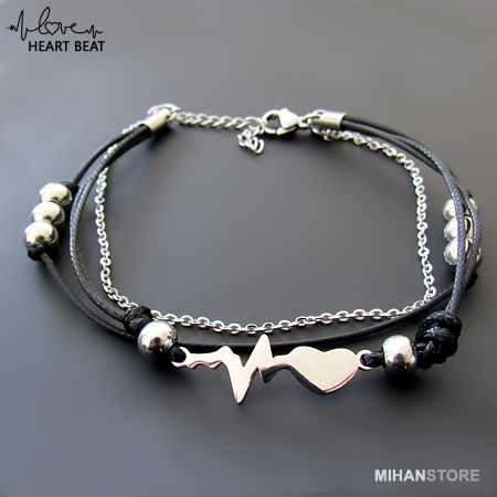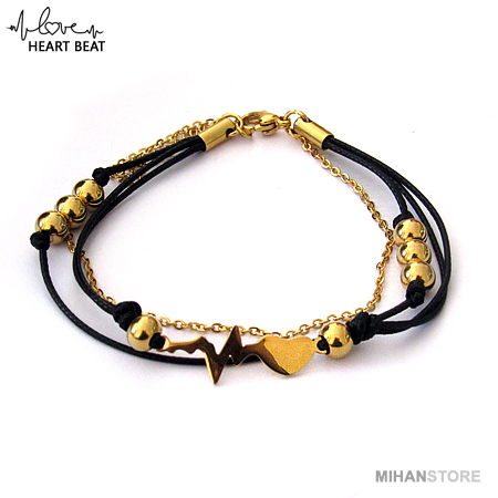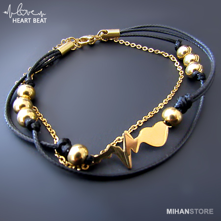 دستبند چرم و استیل طرح ضربان قلب با دو رنگ طلایی و نقره ای نمونه‌ای از زیورهای ظریف و در عین حال پرطرفدار از جانب آقایان و خانوم ها است که با اکثر رنگ‌های لباس همخوانی داشته و در عین حال متفاوت دیده می‌شود. این دستبندها مناسب ترین هدیه برای کسی است که قلب شما برای وی می تپد!
