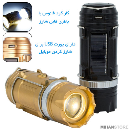 چراغ کمپینگ و پاوربانک خورشیدی چندکاره