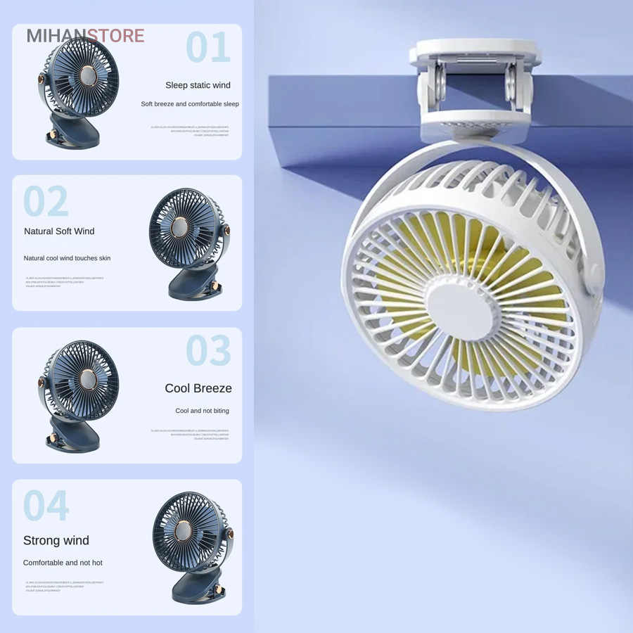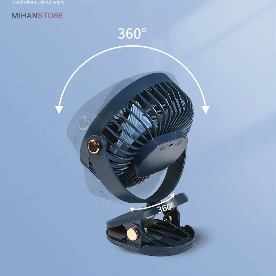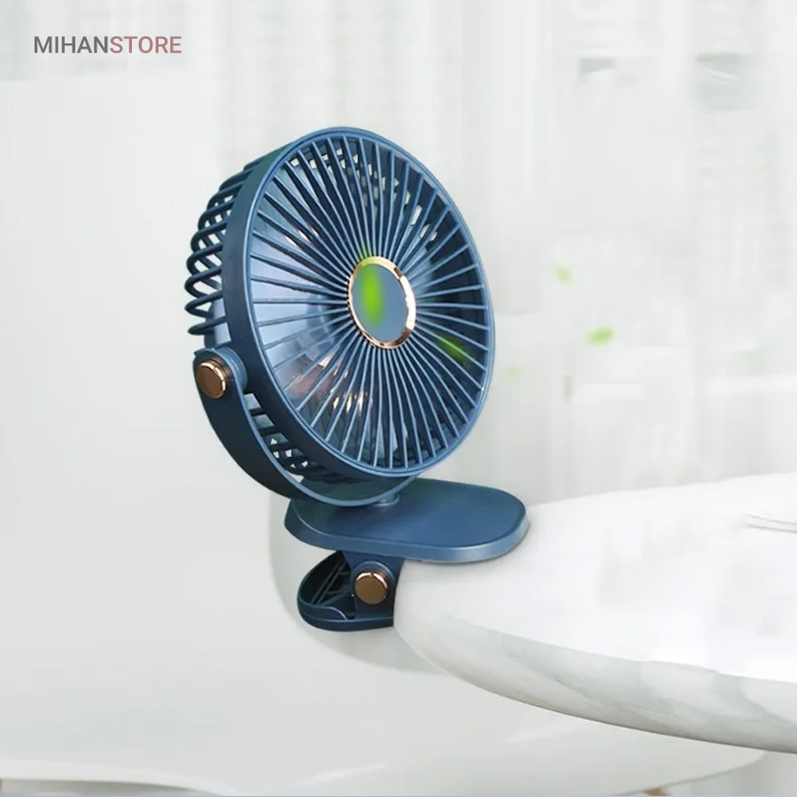 این پنکه می تواند گزینه مناسبی برای زمانی باشد که شما به برق دسترسی ندارید و یا برق رفته است. باطری این پنکه شارژ می شود و می توانید از آن بدون نیاز به اتصال مداوم به برق استفاده کنید. قدرت پرتاب هوا توسط پره های این پنکه با توجه به ساخت متفاوت بسیار بالا است و گردش هوای مناسب و قوی تری ایجاد می کند.این پنکه قدرت انتخاب سه سرعت را به فرد می دهد که با توجه به شرایط فرد انتخاب می کند کدام سرعت را تنظیم کرده و استفاده کند.دارای گیره اتصال برای متصل نمودن به میز یا دستگیره و یا دسته صندلی یا داخل ماشیناین پنکه از سایز خوبی برخوردار است که می توان آن را داخل کیف قرار داده و با خود حمل کنید.یکی دیگر از ویژگی های این پنکه حالت چرخش 360 درجه آن است که با توجه به نیازتان می توانید جهت آن را تنظیم کنید. این پنکه دارای LED در داخل پنکه می باشد که هنگام کار کردن زیبایی خاصی به محصول می بخشد.