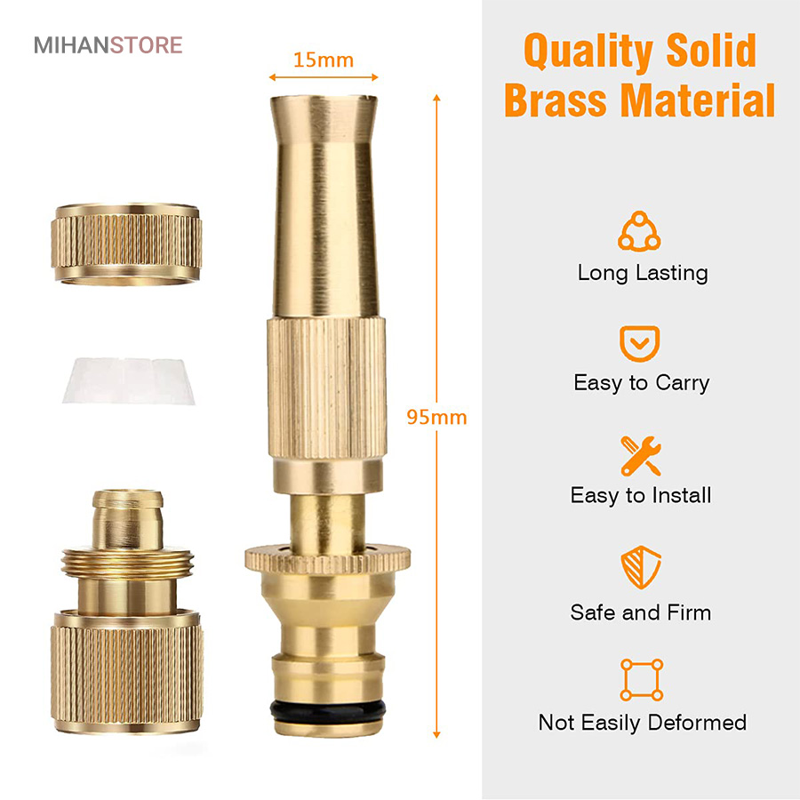 کارواش سر شلنگی برنجی ابعاد 9*2.5 سانتی‌متر و جنس برنج. این نازل کارواش بصورت دو تکه می باشد که می توانید آن را بصورت سوزنی و یا پخش کامل و قفل استفاده نمایید در برابر زنگ زدنی و خوردگی باتوجه به برنجی بودن آن بسیار مقاوم است مناسب جهت انواع کاربردها از جمله شستشوی های خانگی ، خودرو ،آبیاری و … می باشد.