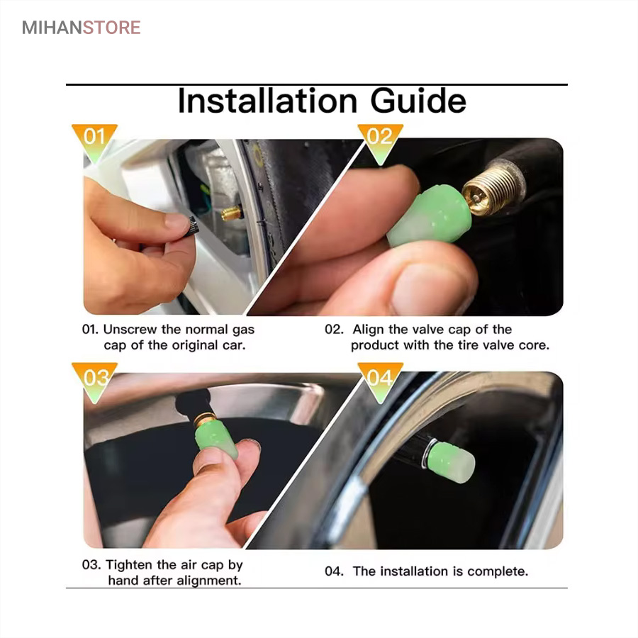 از رنگهای آن میتوان به رنگ فسفری،سبز و نارنجی اشاره کرد. این محصول با جنس پلاستیک ABS مقاوم و قابل شستشو بوده و باعث محافظت از سوزن والف تایر می شود. هر بسته ارسالی از این محصول شامل 4 عدد سر والف می باشد.