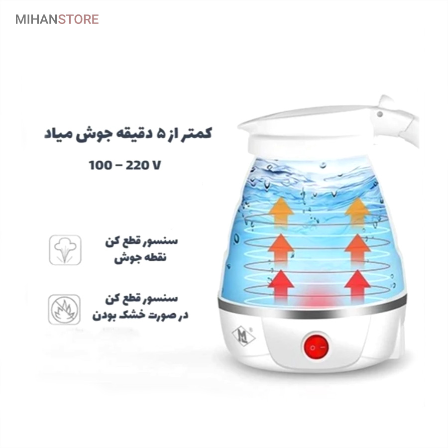اگر شما هم در سفرهایتان دغدغه تهیه آبجوش برای صرف نوشیدنی های گرم مثل چای و غیره را دارید این محصول کاربردی می‌تواند برای شما بسیار مفید و کاربردی باشد،این کتری برقی با قابلیت تا شدن می‌تواند فضای بسیار کمی از کیف مسافرتی یا ماشین شما رو اشغال کند. ورزن بسیار کم این محصول به شما کمک می‌کند تا به راحتی آن را با خود حمل کنید صفحه گرمایش این محصول فولاد ضد زنگ و قابل اطمینان می باشد و همچنین ایمن در برابر سوختگی. این کتری را در کیف مسافرتی خود قرار دهید و به راحتی در مسافرت ها از آن استفاده کنید.