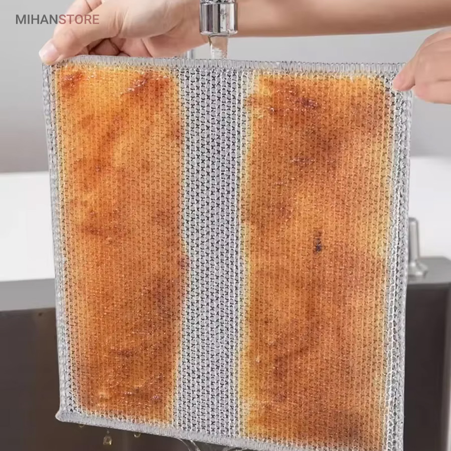 قدرت تمیزکنندگی بالا: این اسکاچ و دستمال توری با قدرت پاک‌کنندگی بالا، به راحتی چربی‌ها، لکه‌های سخت و آلودگی‌ها را از بین می‌برد و نتیجه‌ای تمیز و درخشان به جای می‌گذارد.