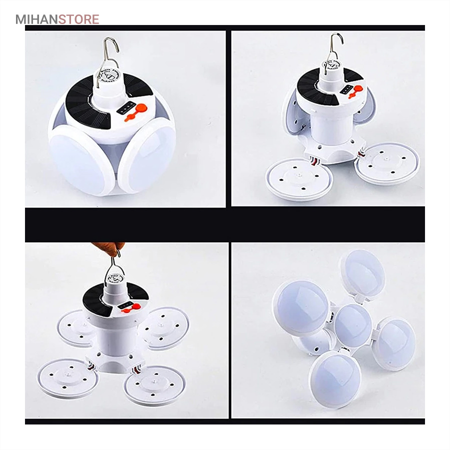 در بالای لامپ حلقه آویزی برای نصب وجود دارد و به شما این امکان را می دهد تا هر کجا که خواستید نصب کنید.چراغ خورشیدی اضطراری توپی 5 پره بسیار زیبا و خوش حالت طراحی شده است به طوریکه شما می توانید هم به حالت بسته از آن استفاده کنید که در این صورت شکل توپی گرد به خود می گیرد و هم می توانید آن را کاملاً باز کنید و پخش نور آن بیشتر می شود و می تواند محیط گسترده تری را نورانی کند.