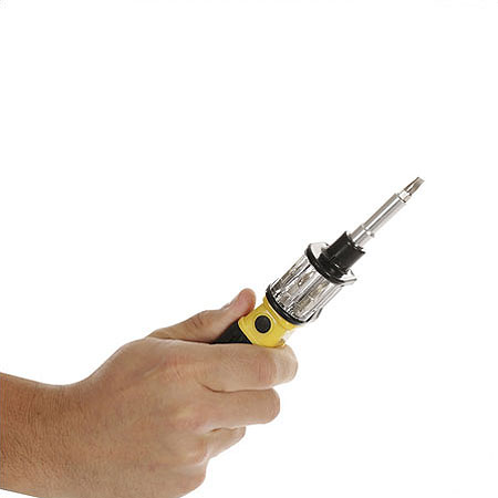 این پیچ گوشتی همه کاره انقلابی در تولید ابزار آلات بوده که با استفاده از آن شما 6 ابزار را فقط در یک دستگاه خواهید داشت. این ابزار قابلیت چرخش 360 درجه را دارا است که سبب شده تا شما به راحتی در هنگام کار با این محصول بتوانید انواع پیچ را باز و بسته نمایید.از دیگر ویژگی های این پیچ گوشتی دسته ارگونومیکی مخصوص آن بوده که از سر خوردن پیچ گوشتی از دست شما جلوگیری می کند. همچنین شما با این وسیله دیگر نگرانی ناشی از گم کردن ابزارهایتان نخواهید داشت و فقط کافی است سری مورد نیاز خود را انتخاب کرده و کار خود را انجام دهید. از این ابزار می توانید در منزل، ماشین و محل کار استفاده نمایید.