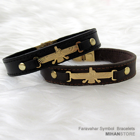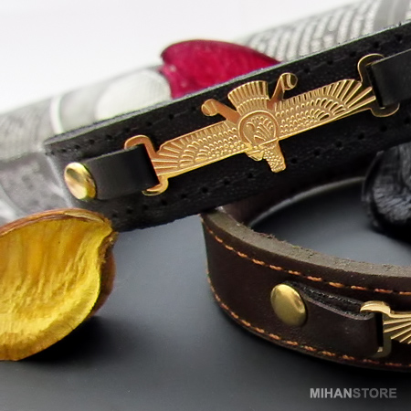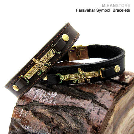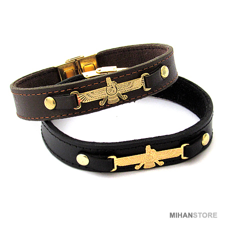 دستبند چرمی طرح فروهر با دو رنگ قهوه‌ای و مشکی و پلاک نازک طلایی فروهر نمونه‌ای از زیورهای ساده و در عین حال پرطرفدار از جانب آقایان و خانوم ها است که با اکثر رنگ‌های لباس همخوانی داشته و در عین حال متفاوت دیده می‌شود. این دستبندها مناسب ترین هدیه برای جوانان شیک پوش است.