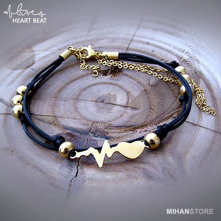 دستبند چرم و استیل طرح ضربان قلب با دو رنگ طلایی و نقره ای نمونه‌ای از زیورهای ظریف و در عین حال پرطرفدار از جانب آقایان و خانوم ها است که با اکثر رنگ‌های لباس همخوانی داشته و در عین حال متفاوت دیده می‌شود. این دستبندها مناسب ترین هدیه برای کسی است که قلب شما برای وی می تپد!