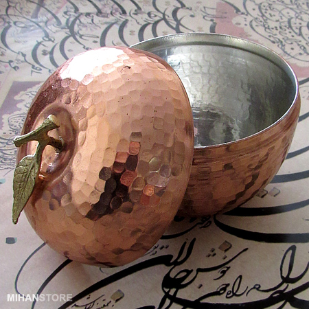 چای یکی از نوشیدنی‌هایی است که جایگاه ویژه‌ای در بین ما ایرانیان دارد، تا حدی که دلمان می‌خواهد با استفاده از ظروف چای‌خوری زیباتر، از این نوشیدنی گرم لذت بیشتری ببریم. یک قندان مسی دست‌ساز می‌تواند جلوه‌ی زیبایی به سینی پذیرایی چای‌مان بدهد. سیبی زیبا از جنس مس که در نگاه اول حس کنجکاوی را برمی‌انگیزد. جزییات در ساخت این قندان کاملا رعایت شده؛ فرمی که کاملا شبیه به میوه‌ی سیب بوده و حتی برگ و ساقه‌ی سیب هم به آن اضافه شده است. ارتفاع قندان حدود 9 سانتی‌متر است و وزنی در حدود 150 گرم دارد. نیمه‌ی بالای سیب، درب قندان محسوب می‌شود و با برداشتن درب، فضای قرار دادن قند را می‌بینیم. دهانه‌ی این فضا دایره‌ای‌شکل است و قطری در حدود 8 سانتی‌متر دارد. روی قسمت خارجی قندان، دایره‌های کوچکی دیده می‌شود که با ضربه‌های چکش ایجاد شده‌اند و در اصطلاح به این عمل چکش‌کاری می‌گویند. این قندان مسی برای علاقه‌مندان به هنرهای سنتی و محصولات دست‌ساز انتخابی مناسب به نظر می‌رسد. مس به دلیل خاصیت شکل‌پذیری و چکش‌خوار بودن از قدیم برای ساخت ظروف استفاده می شد. حرارت در ظروف مسی به‌خوبی پخش می‌شود و این موضوع باعث خوشمزه‌تر شدن و به اصطلاح جا افتادن غذا می‌شود. البته نظرهای مخالف هم در مورد فواید این ظروف وجود دارد. شاید بهتر باشد از این ظروف برای پخت همه‌ی وعده‌های غذایی استفاده نکنیم و استفاده از آن را به چند بار در هفته محدود کنیم. همچنین در این ظرف‌ها تا حد امکان نباید غذاهای اسیدی یا ترش پخت؛ چون باعث از بین رفتن پوشش قلع آن می‌شود. همچنین برای شست‌وشوی این ظروف بهتر است آن‌ها را با دست بشوییم و از قرار دادن آن در ماشین ظرف‌شویی خودداری کنیم.