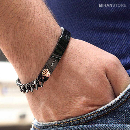 دستبند چرم و استیل طرح Rolex نمونه‌ای از زیورهای ظریف و در عین حال پرطرفدار از جانب همگان است که با اکثر رنگ‌های لباس همخوانی داشته و در عین حال متفاوت دیده می‌شود. این دستبند فوق العاده شیک از یک لایه چرم و یک لایه استیل و نماد زیبای برند Rolex با رنگ های لوگو مسی، طلایی و مشکی عرضه شده است.